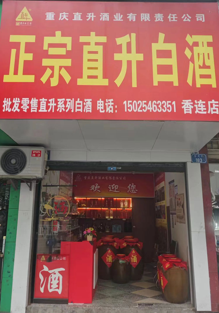 直升白酒又在榮昌昌龍大道67號(雍景灣小區(qū)入口旁)開了間直升白酒總店雍景灣直營店